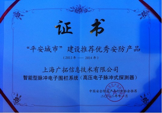 在2012年“中國國際安防博覽會”盛大開幕之際,“平安城市建設推薦優秀安防產品”評選結果,在歷經數月的層層篩選之后隆重揭曉,廣拓憑借先進的產品與技術,在數百家知名安防企業中脫穎而出,摘得“‘平安城市’建設推薦優秀安防產品”殊榮。