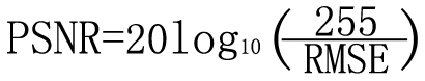 其中,255是最大灰度級,RMSE就是圖像的平均平方(根)誤差,即MSE的平方根。