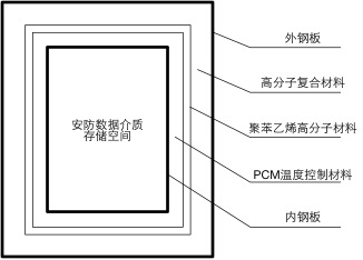 5.6.防護柜整體物理結構采用柜體內鋼板、兩種或兩種以上不同類型耐火溫控材料、外鋼板等組成時,柜體結構示例如圖: